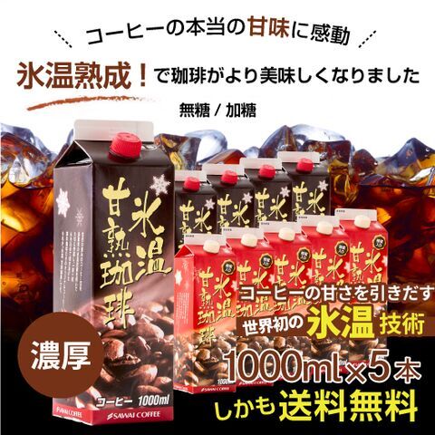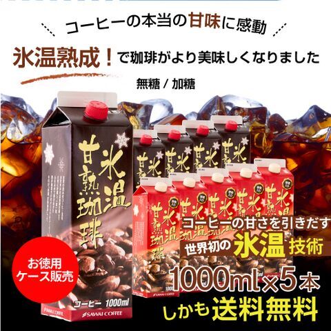 送料無料 氷温甘熟珈琲 アイスコーヒーリキッド 1000ml 5本セット