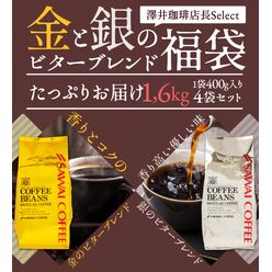 送料無料 焙煎したて コーヒー豆 1.6kg 珈琲豆 コーヒー 福袋 大容量 400gx4袋 中挽き/豆のまま コーヒー専門店 160杯分 飲み比べ セット 金と銀のビターブレンド 澤井珈琲