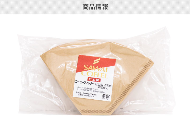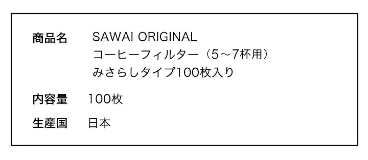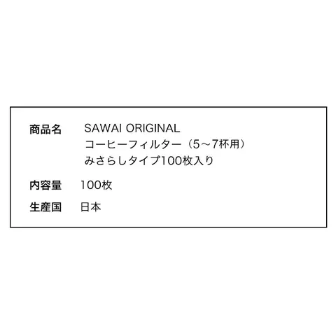 | 商品名 | SAWAI ORIGINAL オリジナルフィルター(5~7杯用)みさらし 100枚入り |