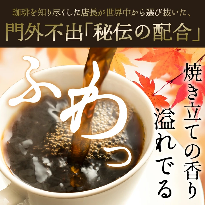 色んな味を試したいコーヒー好きの方:3種類のブレンドを飲み比べできるので、日によって違う味を楽しみたい方にぴったりです。コーヒーの味の違いを楽しむ時間が毎日の楽しみになります。 季節感のあるコーヒーを探している方:秋だけの特別なブレンドだから、季節を感じながらコーヒータイムを楽しみたい方にぴったり。秋らしい味と香りでほっとする時間が過ごせます。 たっぷり飲みたい方・家族で楽しみたい方:約120杯分の大容量なので、毎日飲む方や家族でコーヒーを楽しむご家庭にもぴったりです。コスパも良く、たっぷり楽しめます。 |