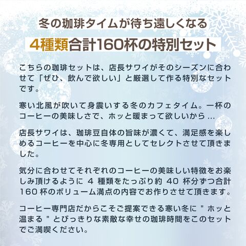 | 商品名 | 澤井珈琲 冬の人気ブレンド4種&手作りクッキー付き |