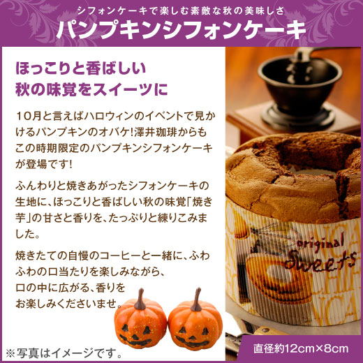 説明 | 10月の限定セットのコーヒーは、 秋にしか味わえない限定など 3種のブレンドコーヒーをセレクト! 【ポイント10倍!】実りの秋。秋限定の珈琲をセレクトし、 ほっこり香ばしい秋の味覚をスイーツに 「パンプキンシフォン」を パティシエの手作りでお届けします。 |