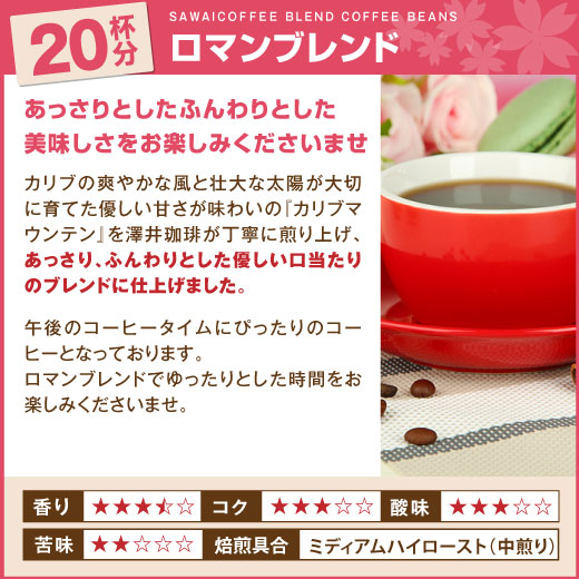 | 産地 | 【スプリングブレンド】ブラジル、エチオピア 【ロマンブレンド】ブラジル、コロンビア他 【スペシャルブレンド】ブラジル、エチオピア他 |