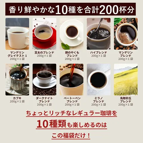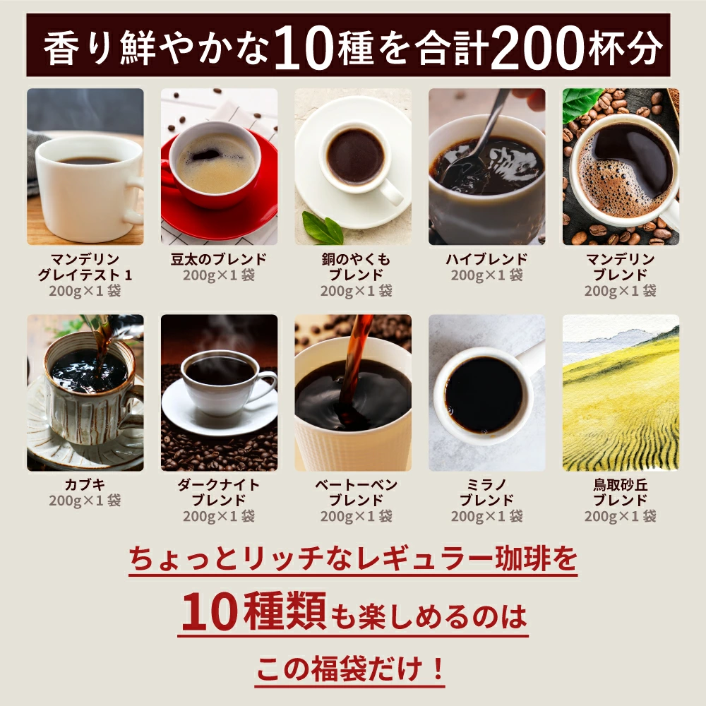 | 商品名 | 12月のおすすめレギュラーコーヒー10種200杯分福袋 |