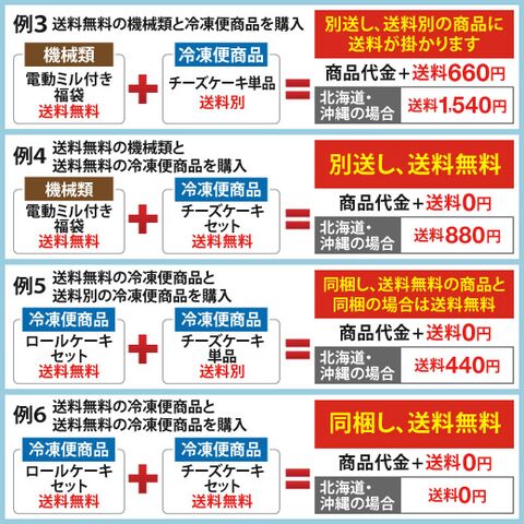 北海道・沖縄県への配送は、冷凍便・通常便それぞれ別途400円(税別)を頂戴します。