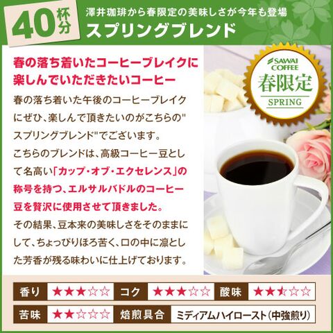 | 内容量 | ●桜のロールケーキ 18cm×1 ●スプリングブレンド 400g ●ゴールデンコロンビア 200g ●サントスプリンセス 200g |