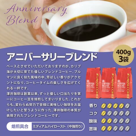内容量 | ●レギュラーコーヒー アニバーサリーブレンド 400g×3袋 |