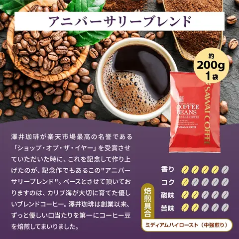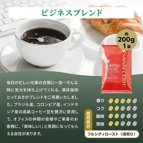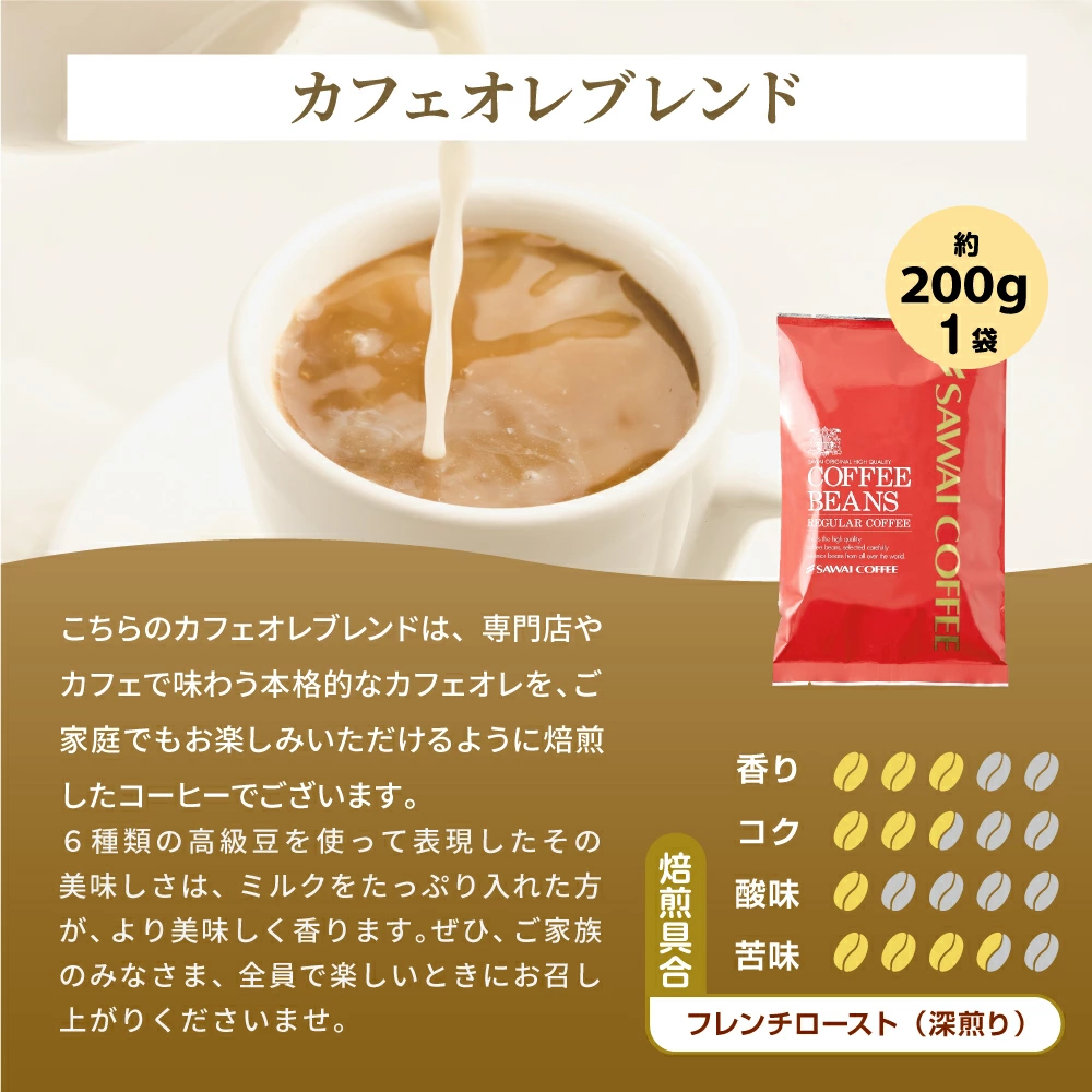 ・アニバーサリーブレンド 200g×1袋 ・ビジネスブレンド 200g×1袋 ・カフェオレブレンド 200g×1袋 |