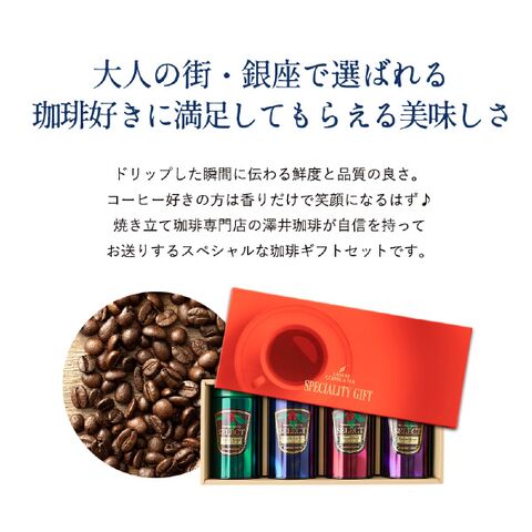 澤井珈琲(さわいこーひー)では、お客様のお家に商品が届き、箱を開けた瞬間。そして、トレードマークの赤いコーヒー袋の封を開けた時に鮮度抜群の「香り高さ」と、飲んだときの「味わい」に感動して頂けるように、レギュラーコーヒーはご注文を頂いてから焙煎をして焼きたてのコーヒー、コーヒー豆、珈琲、珈琲豆をお届けをしている焼き立て珈琲専門店です。お客様に「美味しい」と言って喜んで頂く事が私たちの喜びと思っております。「美味しいコーヒーをお届けしたい」と想い続けて生まれたこだわりの味を、どうぞ、この機会にお楽しみくださいませ。澤井珈琲では、コーヒー豆は挽き方がご選択いただけます。珈琲豆を挽く事をお楽しみ頂ける『豆のまま』や、私共の専用の特注サイズの大型のミルで挽いて、コーヒー粉の状態にしてお届けする方法がございます。中挽き、細挽き、粗挽き、荒挽きなど様々な挽き方がございますが、私共がお薦めする『店長のおすすめ挽き』にて、そのコーヒーに合った一番美味しいと思える挽き方に挽いてお届けします。東京の銀座にも実店舗を構える安心安全な澤井珈琲で楽しいお買い物をお楽しみください。よく間違えられる名前として、沢井珈琲、沢井コーヒー、澤井珈琲店、澤井珈琲本店、さわいこーひー、サワイコーヒーなどがございますが、正式名称は澤井珈琲となります。