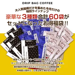 送料無料 金と銀と銅の3種60杯分福袋 鮮度抜群ドリップコーヒー 60杯 珈琲 ドリップパック コーヒー ドリップバッグ 福袋 大容量 飲み比べ 3種 8gx60袋 個包装 8g セット ブレンド ソル ルナ テルス プレミアム 贅沢 高級