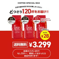 送料無料 コーヒー専門店の120杯分入り 秋のブレンド イタリアナポリ風 福袋