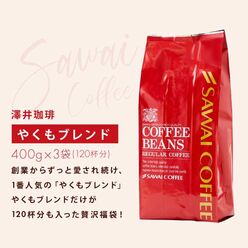 送料無料 コーヒー 福袋 大容量 400gx3袋 中挽き/豆のまま コーヒー専門店 120杯分 セット やくもブレンド