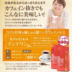 焙煎したて コーヒー豆 600g カフェインレスコーヒー 珈琲豆 送料無料 マンデリン コーヒー福袋 大容量 デカフェ ノンカフェイン 福袋 60杯分 澤井珈琲