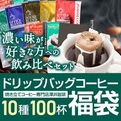送料無料 鮮度抜群 珈琲 ドリップパック コーヒー 福袋 ドリップバッグ 福袋 大容量 個包装 濃い味が好きな方への飲み比べ10種100杯セット 澤井珈琲
