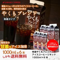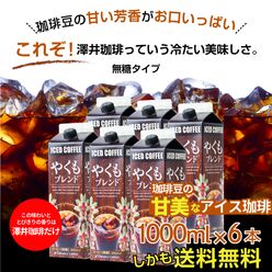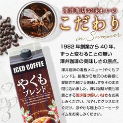送料無料 アイスコーヒー 無糖 アイス コーヒー 美味しい 紙パック おすすめ 業務用 リキッド 澤井珈琲 やくも やくもブレンド 珈琲 贅沢 おしゃれ 無添加 無着色 1000ml セット やくもブレンド アイスコーヒーリキッド6本セット