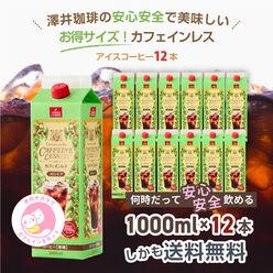 送料無料 カフェインレス カフェインレスアイスコーヒー1,000ml×6本