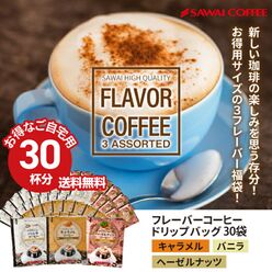 ドリップコーヒー フレーバーコーヒードリップパック 送料無料 コーヒー お試し 福袋 30杯分 個包装 8g 飲み比べ キャラメル バニラ ヘーゼルナッツ 澤井珈琲