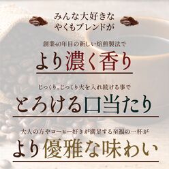 弊社は有名な宍道湖を望む島根県にも自店舗ございます。島根県は古くから出雲神話や小泉八雲が有名な地域です。弊社がこの島根県から全国へ美味しいコーヒーをご提供したいと考えたのが、こちらの『やくもブレンド』です。