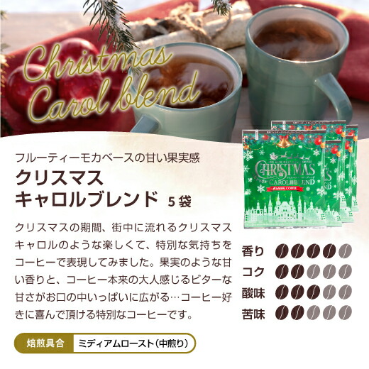 | 産地 | 【クリスマスサンタブレンド】 ブラジル、コロンビア他 【クリスマスキャロルブレンド】 ブラジル、コロンビア他 |