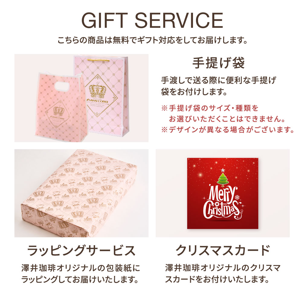 | 澤井珈琲の「クリスマス限定ドリップバッグとタルトギフト」は、大切な方へのギフトにぴったりな特別な組み合わせです。サクサクとしたタルトの食感と濃厚な風味が、コーヒーとの絶妙なハーモニーを生み出し、贈る相手に上質なカフェタイムを提供します。深煎りのコーヒーと甘さ控えめのタルトが、寒い冬の日に贅沢で心温まるひとときを演出。クリスマスにぴったりな、特別なギフトとしてどうぞ。 1. クリスマスだけの特別なドリップ この珈琲は、濃厚なコクと香りが特徴で、タルトの甘さ控えめな風味を一層引き立てます。一口コーヒーを含んだ後に味わうタルトは、豊かな焙煎香と相まって奥深い味わいを演出。タルトのサクサクした食感と濃密なコーヒーの苦みが絶妙に調和し、口の中で広がる贅沢な余韻が心地よく続きます。コーヒーの苦みとタルトの甘さが織りなすハーモニーは、素敵なカフェタイムとなります。 2. クリスマスを彩る贅沢なカフェ体験 特別なクリスマス限定ブレンドコーヒーとタルトの組み合わせで、家族や友人と過ごすひとときをさらに特別なものにします。豊かなコクと香りを持つコーヒーが、タルトの風味と見事にマッチし、心温まるカフェ体験を提供します。寒い冬にぴったりのセットで、ギフトにも最適なスイーツセットです。 3. 家族全員が楽しめる、クリスマスにぴったりのスイーツセット タルトの甘さ控えめな味わいは、大人から子どもまで家族全員が楽しめる仕上がりです。クリスマスの温かなひとときにぴったりで、ナッツやチーズのシンプルな美味しさが澤井珈琲のブレンドコーヒーと調和し、特別な季節のテーブルを彩ります。サクサクした食感と上品な風味で、クリスマスをさらに華やかにします。 | |