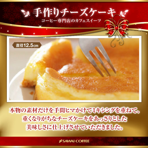 極上の甘い香りが漂う淹れ立てのコーヒーと一緒に、濃厚な美味しさのチーズケーキを是非、お楽しみ下さい。