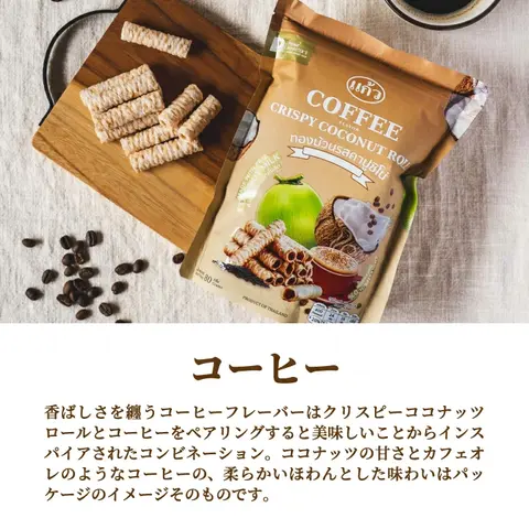 こんな方にオススメです コーヒータイムを特別にしたい方:サクサクの軽い食感とココナッツの香ばしい甘みが、コーヒーの苦みをやさしく引き立てます。いつものコーヒー時間を、南国気分で楽しみたい方にぴったりです。