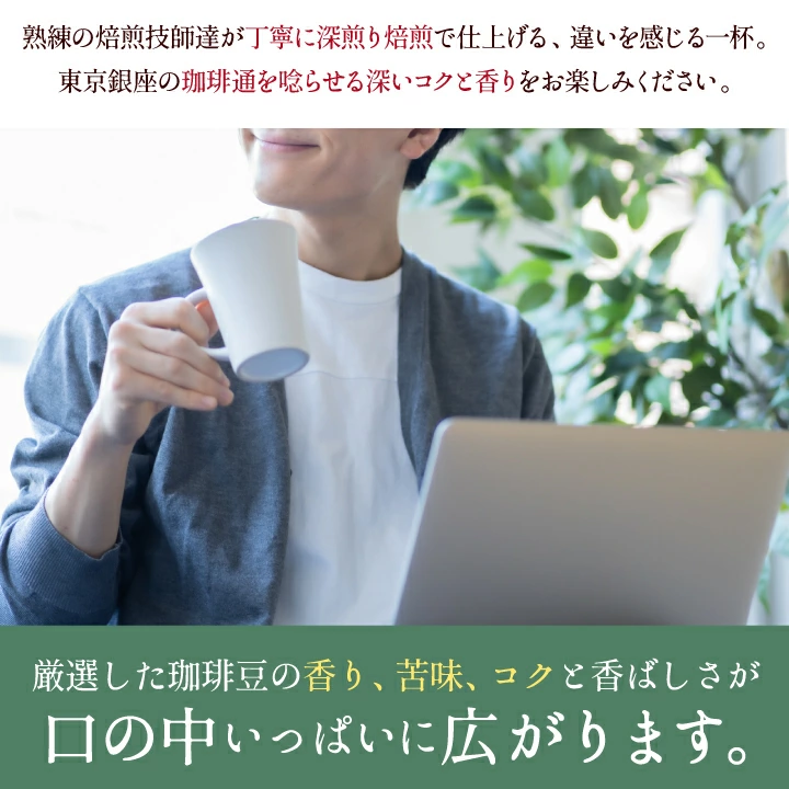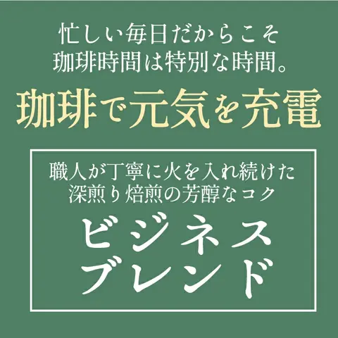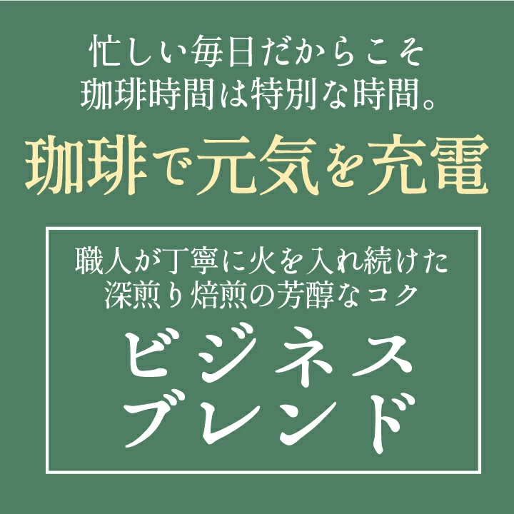 1.深煎りの芳醇なコクと香り 熟練の焙煎士が丁寧に火を入れた深煎り豆を使用。苦味と甘味のバランスが絶妙で、香ばしく濃厚なコクが口いっぱいに広がります。ブラジル産・コロンビア産・インドネシア産の豆をブレンドすることで、どこでも本格的な味わいをお楽しみいただけます。 2.手軽にカフェクオリティ ドリップバッグタイプだから、お湯を注ぐだけで簡単に本格的なコーヒーが完成。忙しい朝でも、オフィスでも、自分へのご褒美として手軽に贅沢なコーヒータイムを楽しめます。カップから立ち上る香りが、一瞬で気分をリフレッシュさせてくれます。 3.毎日の仕事を支える贅沢ブレンド 「ビジネスブレンド」は、忙しい日々を頑張る人のための特別なブレンド。濃厚な味わいと甘い香りが、仕事中の疲れを癒やし、リラックスできる時間を演出します。50袋入りでたっぷり楽しめるので、職場の仲間やお客様へのおもてなしにもぴったりです。 |