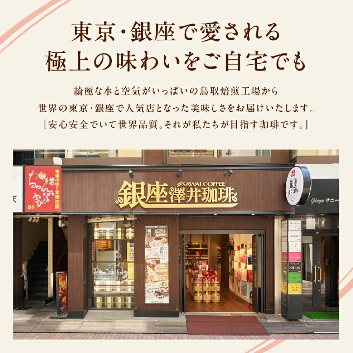綺麗な水と空気がいっぱいの鳥取焙煎工場から、世界の東京・銀座で人気店となった美味しさをお届け。安心安全にして世界品質、それが私たちが目指す珈琲です。