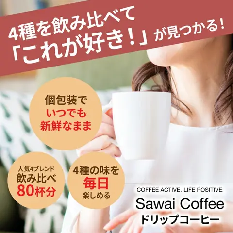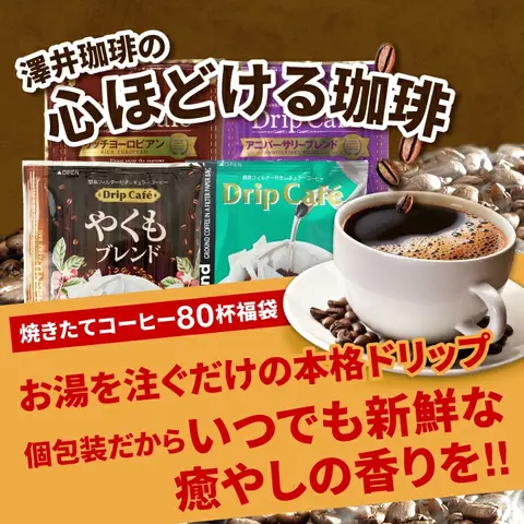 | 商品名 | 毎日が楽しくなる澤井珈琲4種ドリップバッグ80杯福袋 やくも・ビターブレンド・アニバーサリーブレンド・リッチヨーロピアン |