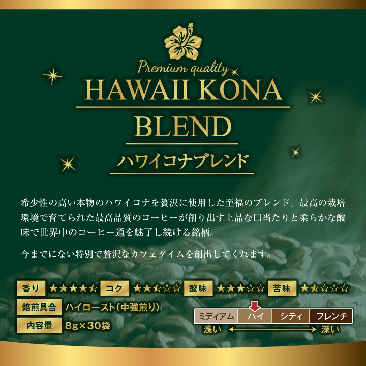 | 内容量 | ハワイコナブレンド 8g×30袋 |