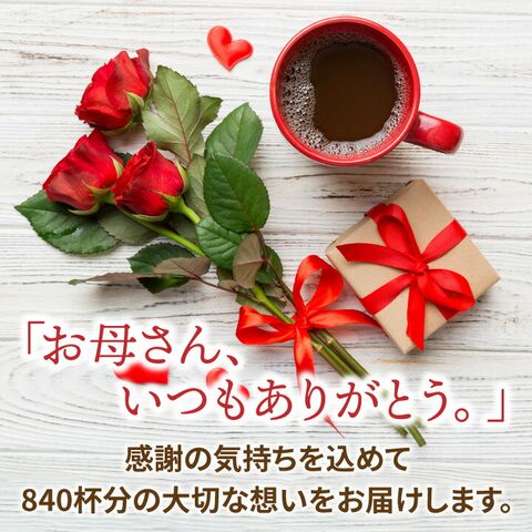 | いろんな味が楽しめて、たくさん飲めて、気持ちも伝えられる、母の日だけの特別なコーヒーセットです。 1.毎日違う味が楽しめる!14種類のコーヒーがセットに コクが深いもの、フルーティーなもの、すっきりしたものなど、全部で14種類のコーヒーが入っています。毎日違う味を選べるので、飽きることなく楽しめます。お母さんの「今日はどんな味にしようかな?」という楽しみが増えます。お店で出るような本格的な味なのに、お湯をそそぐだけで簡単に飲めるのもポイントです。忙しい朝でも、お昼の休憩時間でも、ゆっくりくつろげるコーヒータイムが手に入ります。 2.たっぷり840杯分!家族みんなで楽しめる大容量 ドリップバッグが全部で840袋入っているから、お母さんひとりはもちろん、家族みんなで分けても十分な量です。毎日飲む人にも、たまにゆっくり飲みたい人にもぴったり。来客時にもさっと出せるので、お母さんの“ちょっと嬉しい”が増える使い方がたくさんできます。たっぷりあるのに使いやすく、お得に楽しめるのがこの商品の魅力です。 3.感謝の気持ちが伝わるカードとカーネーション付き 「ありがとう」の気持ちをまっすぐ届ける感謝カードと、母の日の象徴・カーネーションがついています。照れくさくて普段は言えない感謝の言葉も、このプレゼントなら自然に伝えられることでしょう。見た目も華やかなので、箱を開けた瞬間からお母さんが笑顔になること間違いなし。母の日限定の心あたたまるギフトです。 | |
