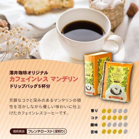 | 原材料 | カフェインレス コロンビア(生豆生産国:コロンビア) カフェインレス モカ(生豆生産国:エチオピア) カフェインレス マンデリン(生豆生産国:インドネシア) カフェインレス ブラジル(生豆生産国:ブラジル) |