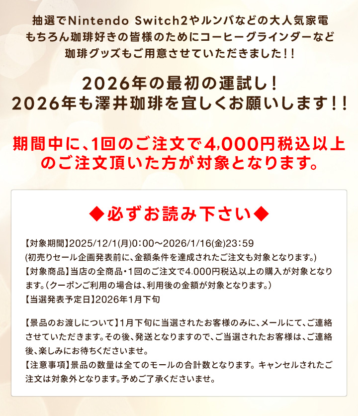 【初売り企画】 対象商品購入でご祈願珈琲2袋プレゼント