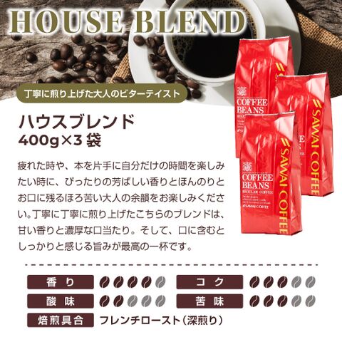 内容量 | ・ハウスブレンド 400g×3袋 |