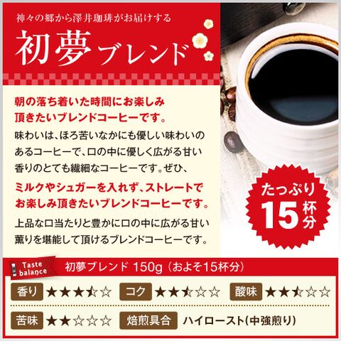 ●レギュラーコーヒー ・新春ブレンド 150g×1袋 ・初夢ブレンド 150g×1袋 ・干支ブレンド 150g×1袋 ●ドリップバッグコーヒー プレミアムゴールド×2袋 |