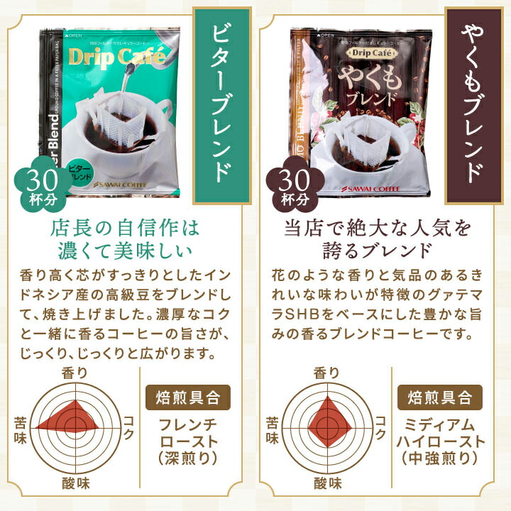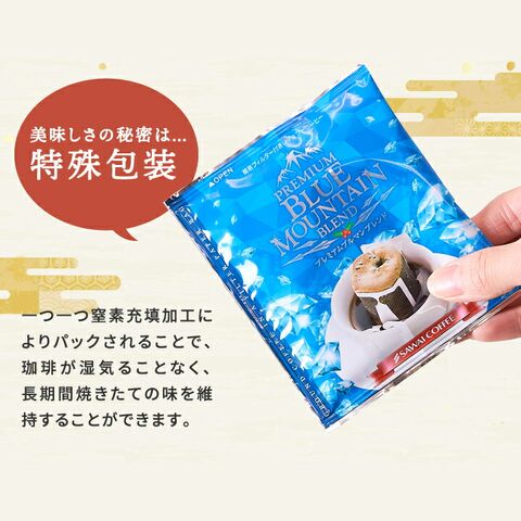 | 内容量 | ドリップバッグ ・ライトブレンド 8g×30個 ・マイルドブレンド 8g×30個 ・ビターブレンド 8g×30個 ・やくもブレンド 8g×30個 ・ブレンドフォルテシモ 8g×30個 ・ビクトリーブレンド 8g×30個 ・アニバーサリーブレンド 8g×30個 ・メローブレンド 8g×30個 ・ビターゴールド 7g×30個 ・プレミアムブルマンブレンド 8g×10個 ●開運干支飴(午年) 2本×1袋 |
