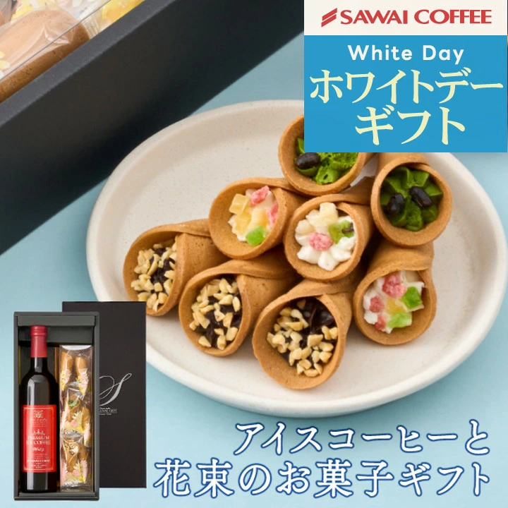 | このギフトは、香り高いプレミアムアイスコーヒーと、花束のような可愛いお菓子のセットです。贈り物にぴったりで、特別なカフェタイムを演出します。 1.特別なアイスコーヒーで贅沢なひとときを ワインのように香りが広がり、果実のような甘さと、すっきりとした後味が特徴です。さらに、無糖なので、自分好みに甘さを調整できるのもポイントです。 2.見た目も可愛い!食べられる花束のお菓子 フルーツは、レモン風味のバニラクリームに、イチゴ・マンゴー・キウイをのせた爽やかな味わい。チョコは、濃厚なチョコクリームとアーモンドが相性抜群。抹茶は、宇治抹茶のクリームに小豆を加え、和の風味を楽しめます。 3.贈り物に最適!高級感のあるギフトセット コーヒー好きの方や、大切な人へのプレゼントに最適。誕生日、記念日、お礼の品など、さまざまなシーンで活躍します。 | |
