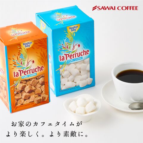 フランス最大の砂糖メーカー・ベカギャンセ社のペルーシュはパリ万国博覧会で金賞を受賞。結晶の大きさ、硬さは独自製法で、不揃いの形が手作り風でユニーク。ブラウン未精製なので、ミネラルも豊富。