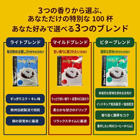 商品名 ドリップコーヒー ライト・マイルド・ビター 大容量 1種100杯分 福袋