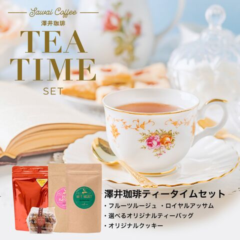 澤井珈琲のティータイムセットは、厳選された紅茶と手作りのオリジナルクッキーが楽しめるセットです。紅茶の種類が豊富で、お得に贅沢なティータイムを体験できます。