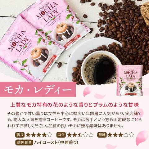 | 内容量 | ●ドリップバッグ ・モカレディ 8g×1袋 ・モカブレンド 8g×1袋 ・マンデリンスイート 8g×1袋 ●ガトープルポ カフェモカ/いちご/抹茶/レモンのうち1個 ※種類は選べません |