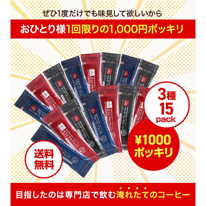 | 内容量 | ・オリジナルブレンド 2g×5袋 ・ブルマンブレンド 2g×5袋 ・マンデリンストレート 2g×5袋 |